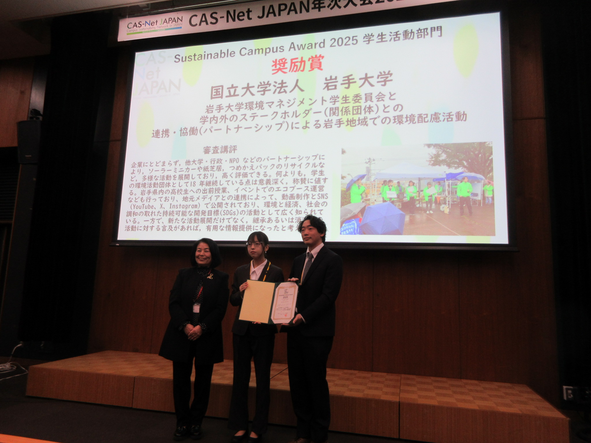 一般社団法人サステイナブルキャンパス推進協議会(CAS-Net JAPAN)2025年次大会に環境マネジメント学生委員会所属学生と参加。「サステイナブルキャンパス賞2025」奨励賞を受賞しました。